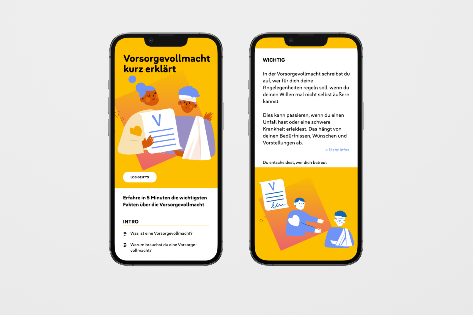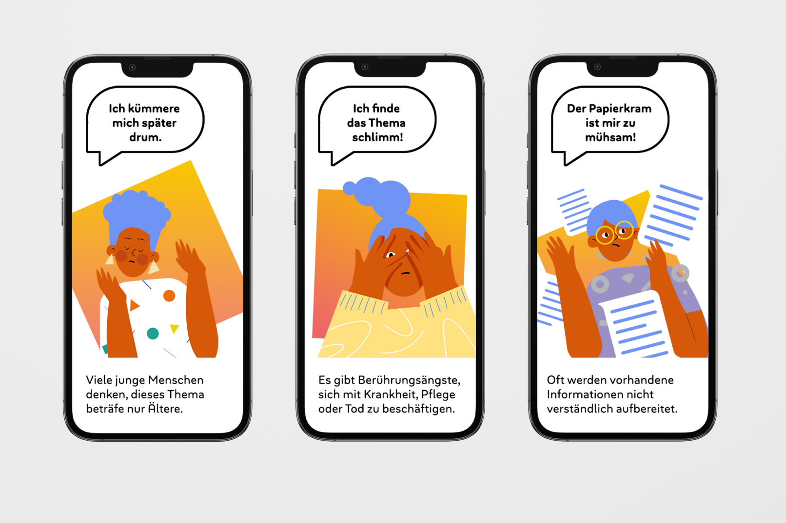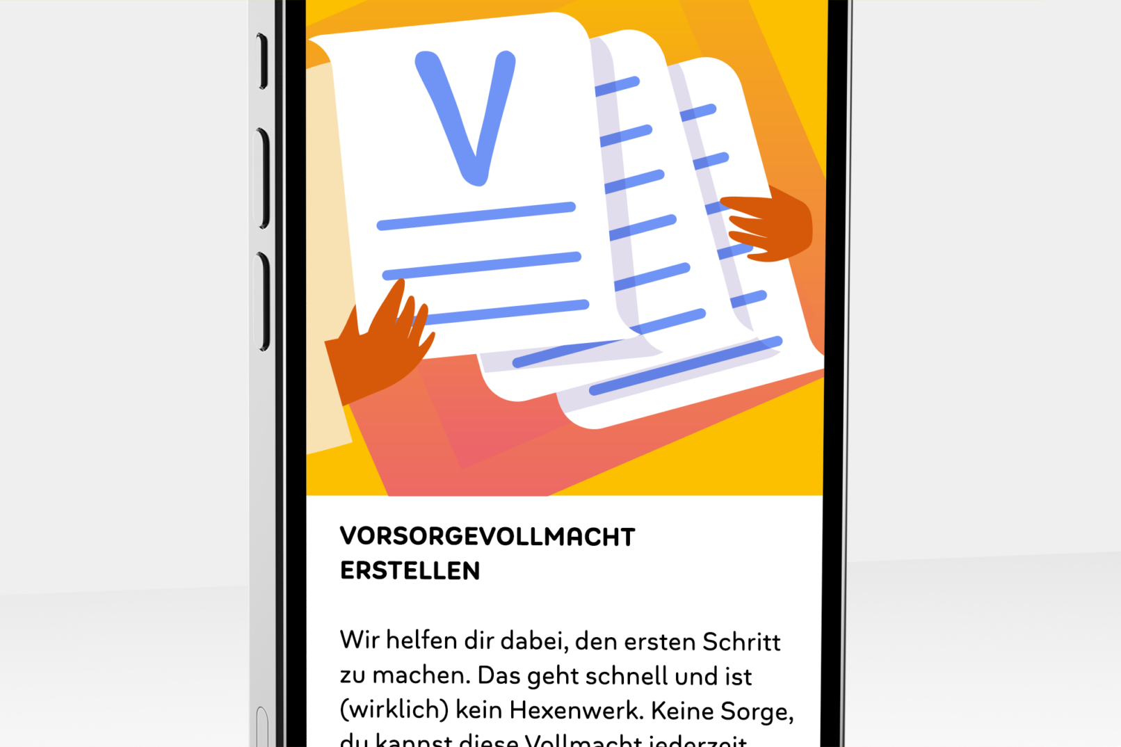 Zuerst einmal sollten Menschen die Hemmschwelle verlieren, sich überhaupt um ihre Vorsorge zu kümmern. Das Informationsangebot ist darum sehr klar gegliedert, um den Einstieg zu erleichtern. Der Leitfaden ist ein schnell konsumierbares, multimediale Werkzeug, dass Wissen vermittelt.